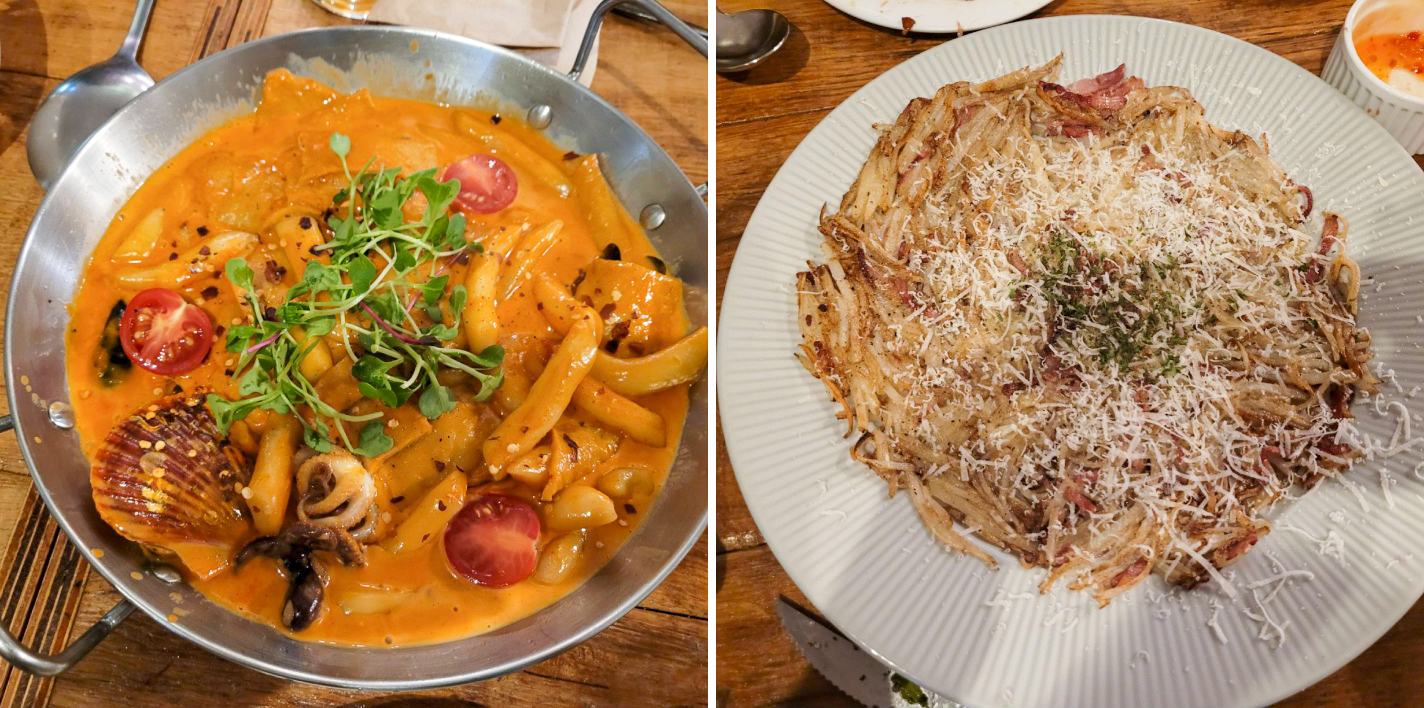 감자채를 썰어 프라이팬에 구운 스위스식 감자전 뢰스티(Rösti)는 평소 ‘강원도 감자전’과 ‘해시 브라운’을 좋아하는 부부가 빛보다 빠르게 접수하였다.