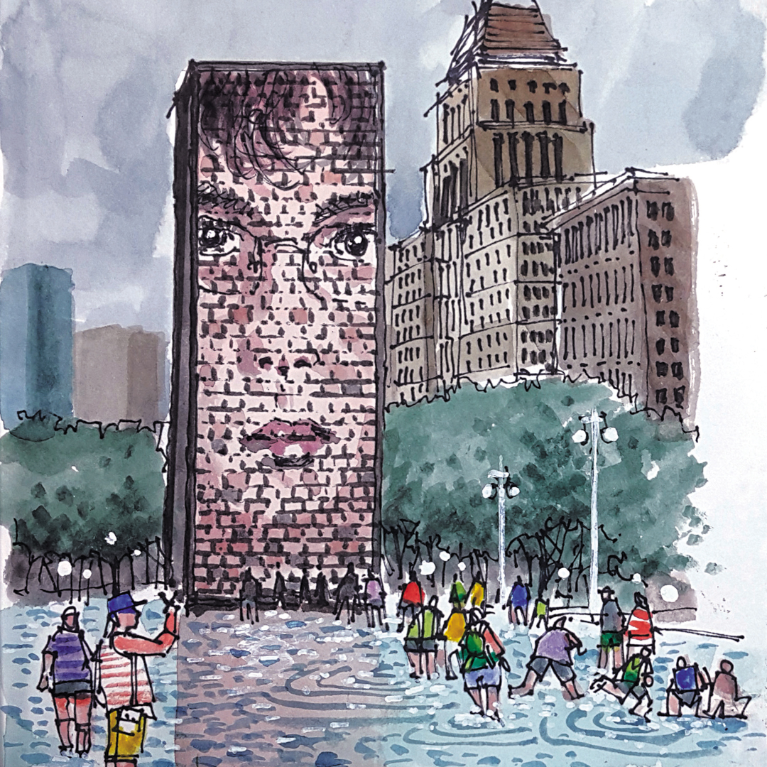 인근에는 스페인의 개념 예술가인 하우메 플렌사(Jaume Plensa)가 디자인했다는 크라운 분수광장이 있다. 대형 LED 전광판을 활용하여 시카고 시민 100명의 얼굴로 이루어진 아트타워와 함께 이곳 분수 속에서 뛰어노는 철부지 아이들과 물장난을 치며 동심으로 돌아가 본다.