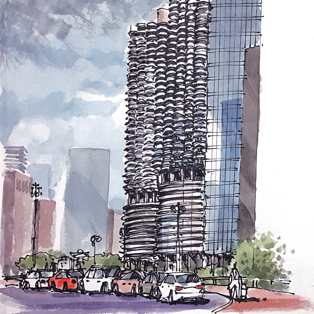 기내에서 스케치했던 이 한 폭의 시카고 풍경이 기내에서 잠시 설렜던 에피소드를 오래도록 추억하게 한다. 코로나가 종식되어 일상이 회복되면 꼭 한 번 다시 가보고 싶은 도시다.