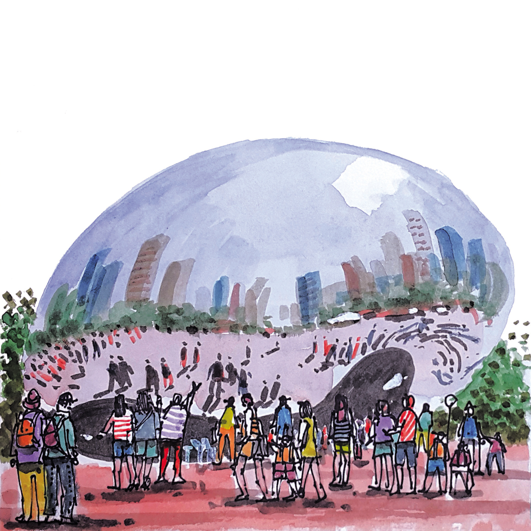 생김새가 마치 강낭콩 같아서 시카고 빈(Bean)이라는 별명이 붙은 설치미술품 ‘클라우드 게이트’도 시카고의 새로운 상징으로 관광객들에게 인기가 높다. 거울같이 매끄러운 금속 표면에 나의 모습이 시카고를 배경으로 하여 다양한 표정으로 일그러져 보인다. 이방인으로서 나의 리얼리티가 어디쯤 존재하는지 찾아보면 많은 군중 사이에서 발견한다.